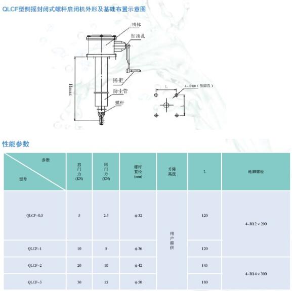 側(cè)搖全封閉螺桿式啟閉機為全封閉型,適于露天安裝。