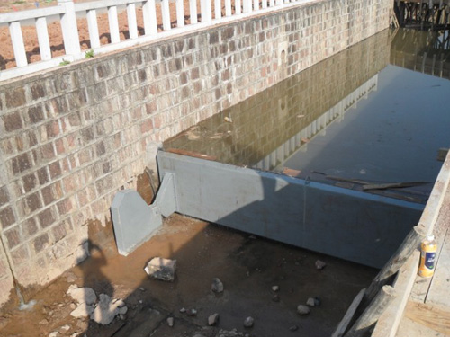現(xiàn)在應(yīng)用最為廣泛的翻板閘門即為水力自控翻板閘門,其工作原理是杠桿平衡與轉(zhuǎn)動(dòng),具體來說,水力自控翻板閘門是利用水力和閘門重量相互制衡,通過增設(shè)阻尼反饋系統(tǒng)來達(dá)到調(diào)控水位的目的:當(dāng)上游水位升高則閘門繞“橫軸”逐漸開啟泄流;反之,上游水位下降則閘門逐漸回關(guān)蓄水,使上游水位始終保持在設(shè)計(jì)要求的范圍內(nèi)。舉個(gè)例子,滾輪連桿式翻板閘門是一種雙支點(diǎn)帶連桿的閘門,由面板、支腿、支墩、滾輪,連桿等部件組成,根據(jù)閘門水位的變化,依靠水力作用自動(dòng)控制閘門的開啟和關(guān)閉。當(dāng)上游來流量加大,閘門上游水位抬高,動(dòng)水壓力對(duì)支點(diǎn)的力矩大于門重與各種阻尼對(duì)支點(diǎn)的力矩時(shí),閘門自動(dòng)開啟到一定傾角,直到在該傾角下動(dòng)水壓力對(duì)支點(diǎn)的力矩等于門重支點(diǎn)的力矩,達(dá)到該流量下新的平衡。流量不變時(shí),開啟角度也不變。而當(dāng)上游流量減少到一定程度,使門重對(duì)支點(diǎn)的力矩大于動(dòng)水壓力與各種阻尼對(duì)支點(diǎn)的力矩時(shí),水力自控翻板閘門可自行回關(guān)到一定傾角,從而又達(dá)到該流量下新的平衡。