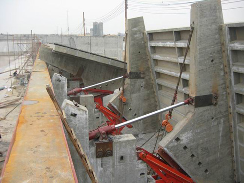 (2)1983年下半年設(shè)計(jì)的面板向下游有一定的預(yù)傾角度的滾輪連桿式閘門: